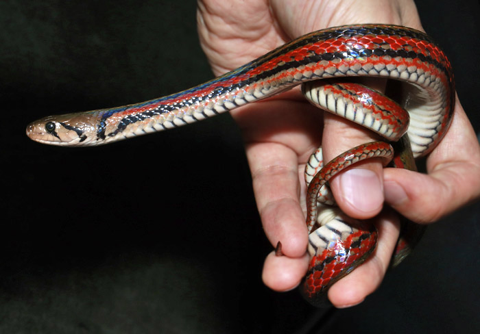 Xenopeltis unicolor | 非常に数少ないファームハッチのベビー!滅多に見られないのであまり知られていませんが、幼体は親とは違って頭部が真っ白で別種のような姿です。 油膜のような(笑)ギラギラ感が独特の美しさ。ややメカニカル感もあるものの、よく見れば可愛らしい顔つきが人気です。 インドネシア産個体群。 幼体 画像 画像 |
