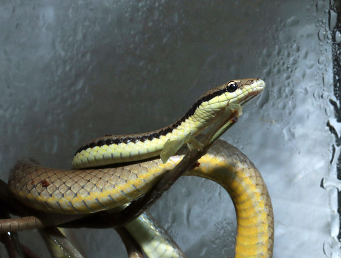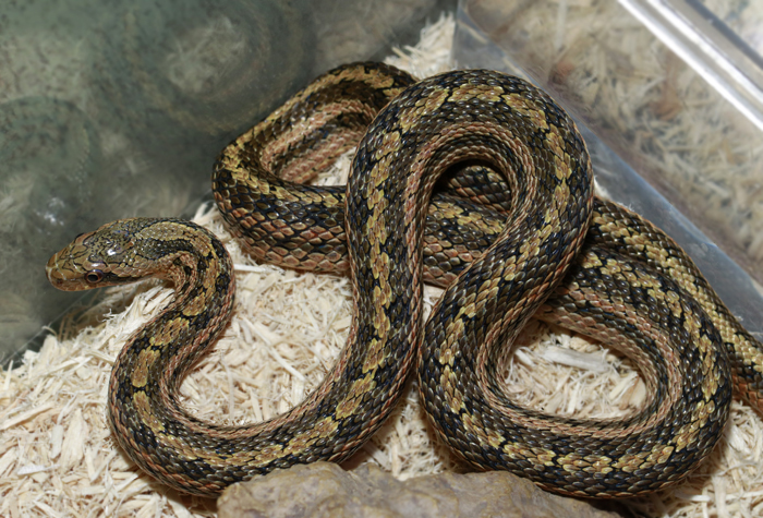 Spilotes pullatus | 2025の国内CB!本種のCBって凄いことです。 南米の大型ナミヘビで、アグレッシブで立体活動をよく行います。古い和名「フミキリヘビ」のとおり、個体によって比率が異なる黒と黄色のバーが体に並びます。 興奮しやすい性質ですが、威嚇して喉を膨らました姿がまた格好良いのです! メキシコから南米にまで広く分布しますが、この個体達はガイアナ産原資個体による繁殖個体。 メス 画像 画像 |
